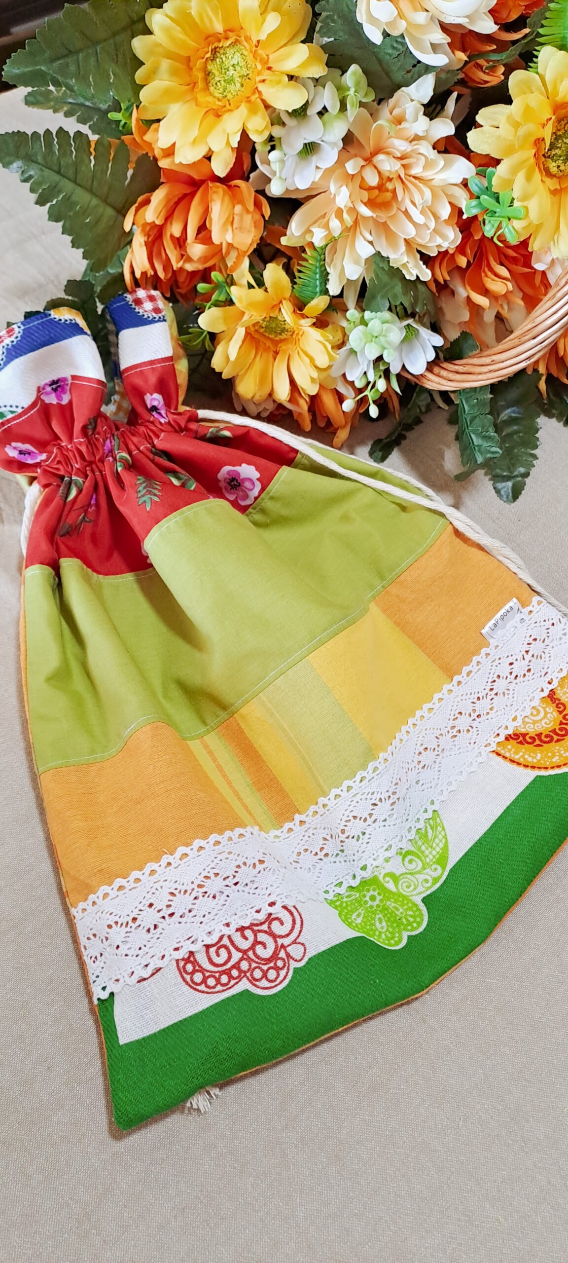 Este saco de pão artesanal, com padrões típicos e detalhes em renda, não só mantêm o teu pão fresco por mais tempo, como dá aquele charme rústico à tua cozinha. Feito com amor, tecidos resistentes e padrões que celebram a nossa identidade.