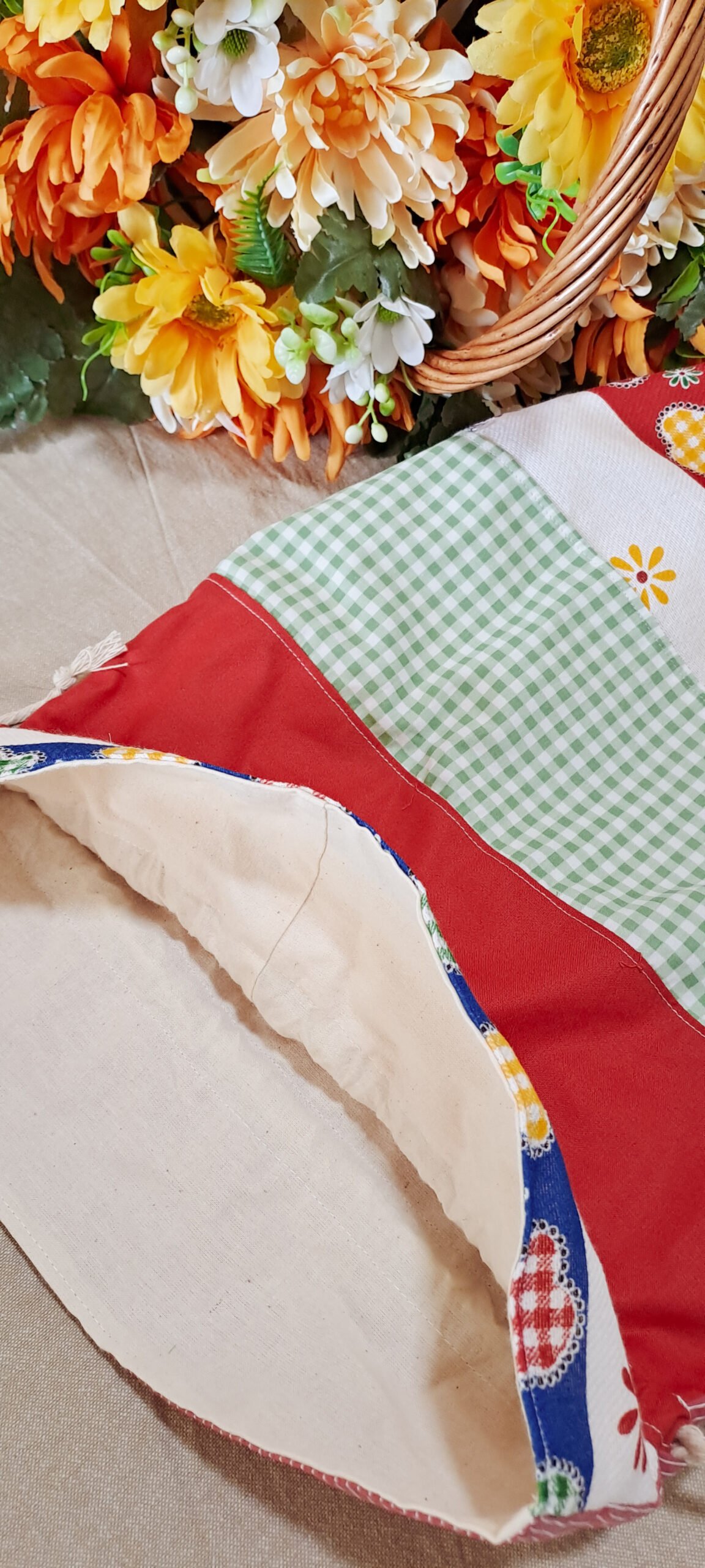 Este saco de pão artesanal, com padrões típicos e detalhes em renda, não só mantêm o teu pão fresco por mais tempo, como dá aquele charme rústico à tua cozinha. Feito com amor, tecidos resistentes e padrões que celebram a nossa identidade.